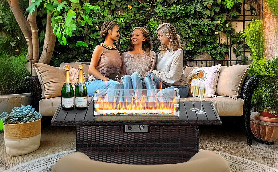 Patio Furniture Set,4 Pieces Outdoor Patio Couch Furniture with 44" Fire Pit Table 3-Seat Patio Wicker Sofa & Ottoman Seat,for Backyard Garden Deck Lounge Stylish Outdoor Seating